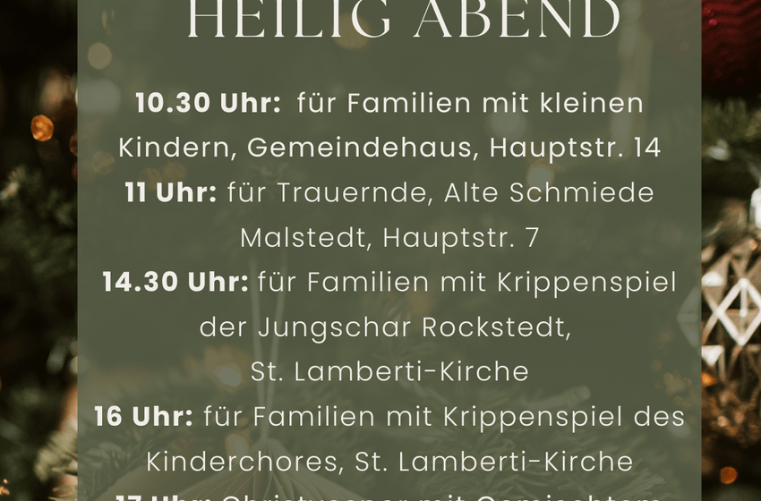 Gottesdienste zum Fest - Heilig Abend und Weihnachten