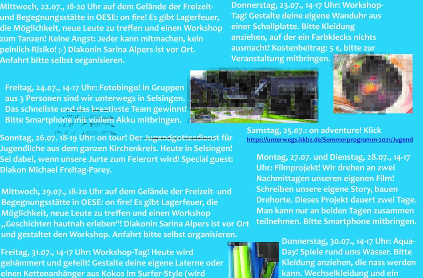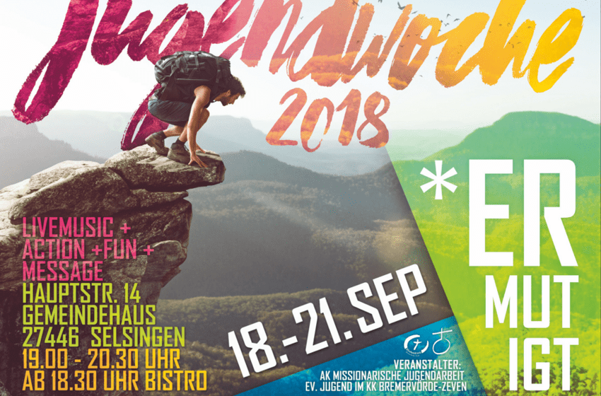 Vom 18. bis 21. September findet im Selsinger Gemeindehaus die Jugendwoche mit Mitarbeiterinnen und Mitarbeitern aus dem Kirchenkreis statt. Ab 18:30 Uhr hat das Bistro geöffnet. Von 19:00 Uhr bis ...