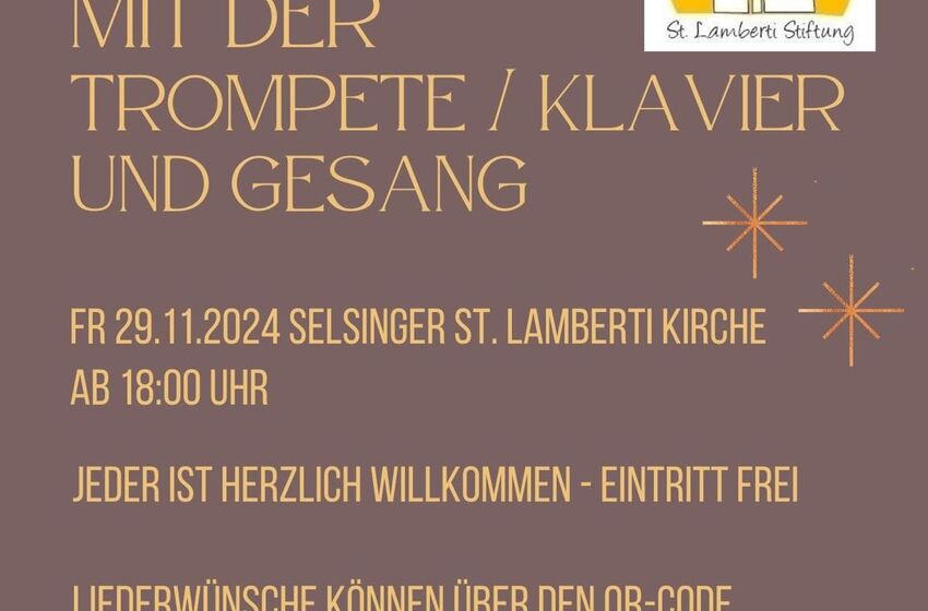 Die Stiftung lädt am Abend des Selsinger Lichterzaubers zum Mitsingen in die St. Lamberti-Kirche ein. Um 18 Uhr beginnnt der Abend. Zu Beginn wird der Lebendige Adventskalender von Pastorin Petra ...