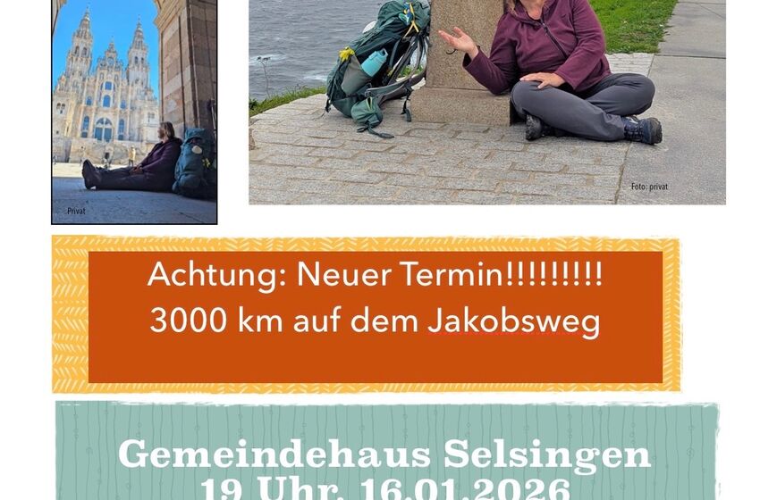 Die Pilgerin Nina Baucke berichtet von ihrer Pilger-Wanderung von Bremervörde bsi ins 3000km entfernt gelegene Santiago de Compostela in Spanien. Freitag, 16. Januar 2026, 19 Uhr Gemeindehaus ...