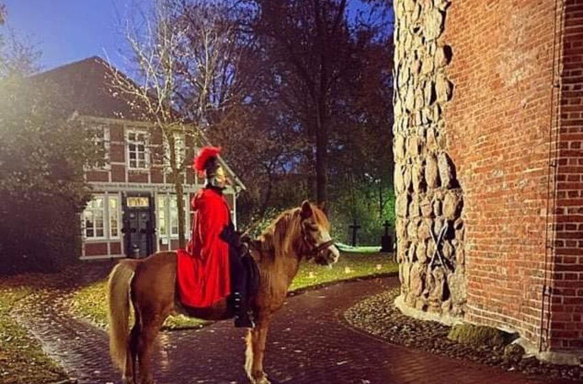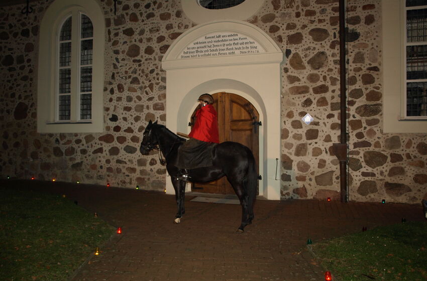 St. Martin auf dem Pferd führt den Laternenumzug an