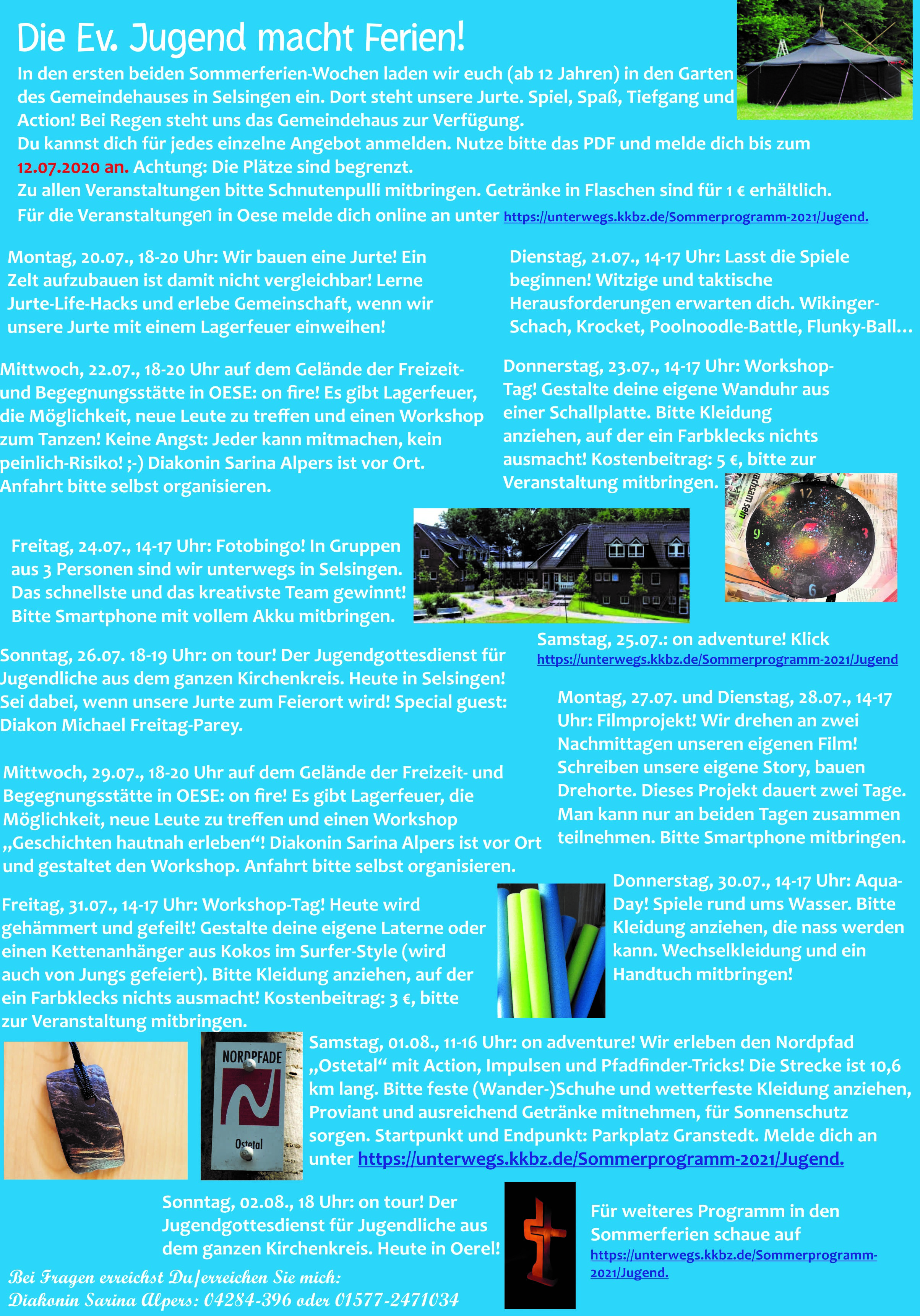 Für die Veranstaltungen in Oese melde dich online an unter https://unterwegs.kkbz.de/Sommerprogramm-2021/Jugend.