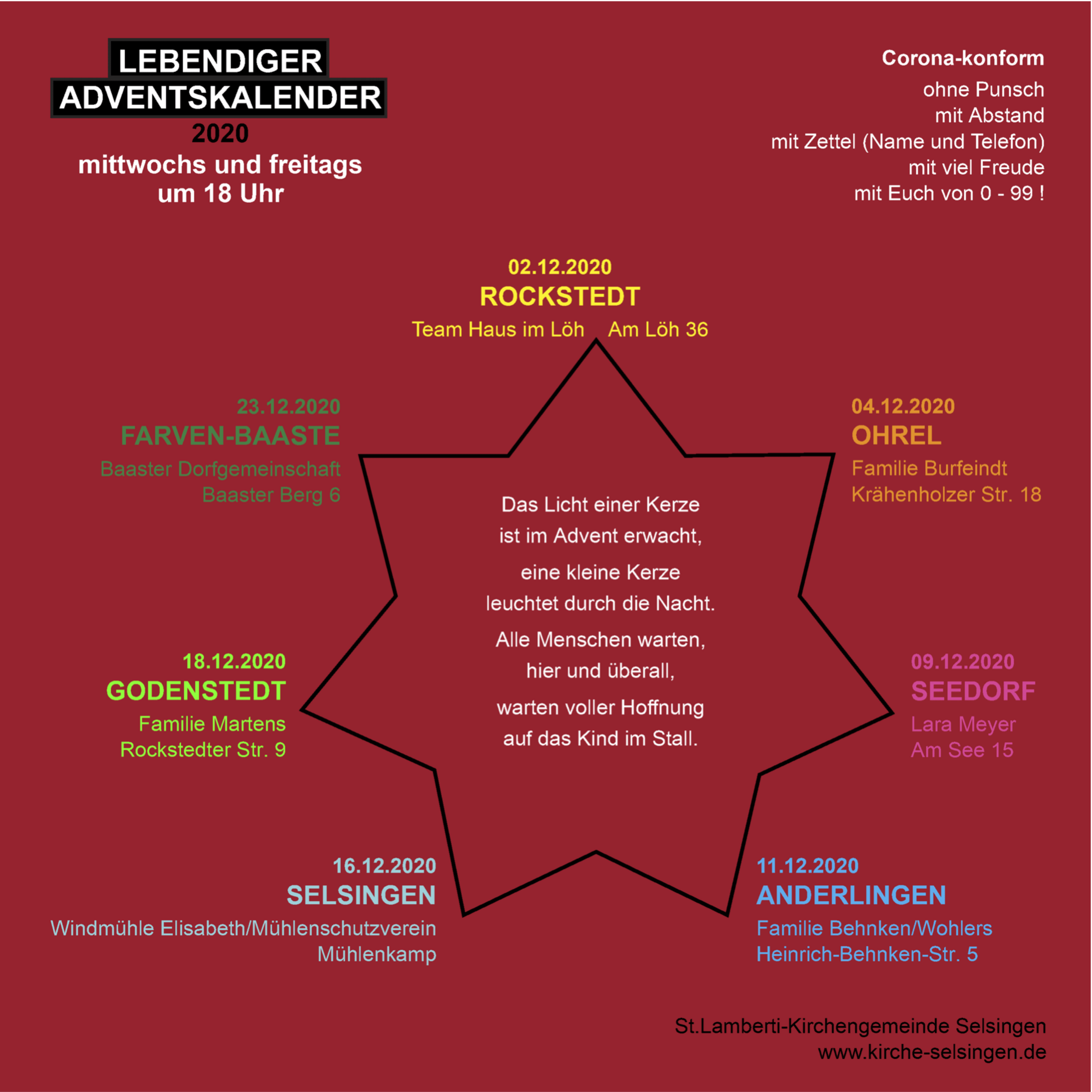 Wir bedanken uns bei allen, die den Kalender liebevoll vorbereitet haben - und bei den treuen Besuchern. - Wir wünschen eine gesegente Adventszeit und hoffen auf einen unbeschwerteren Lebendigen Adventskalender in 2021.