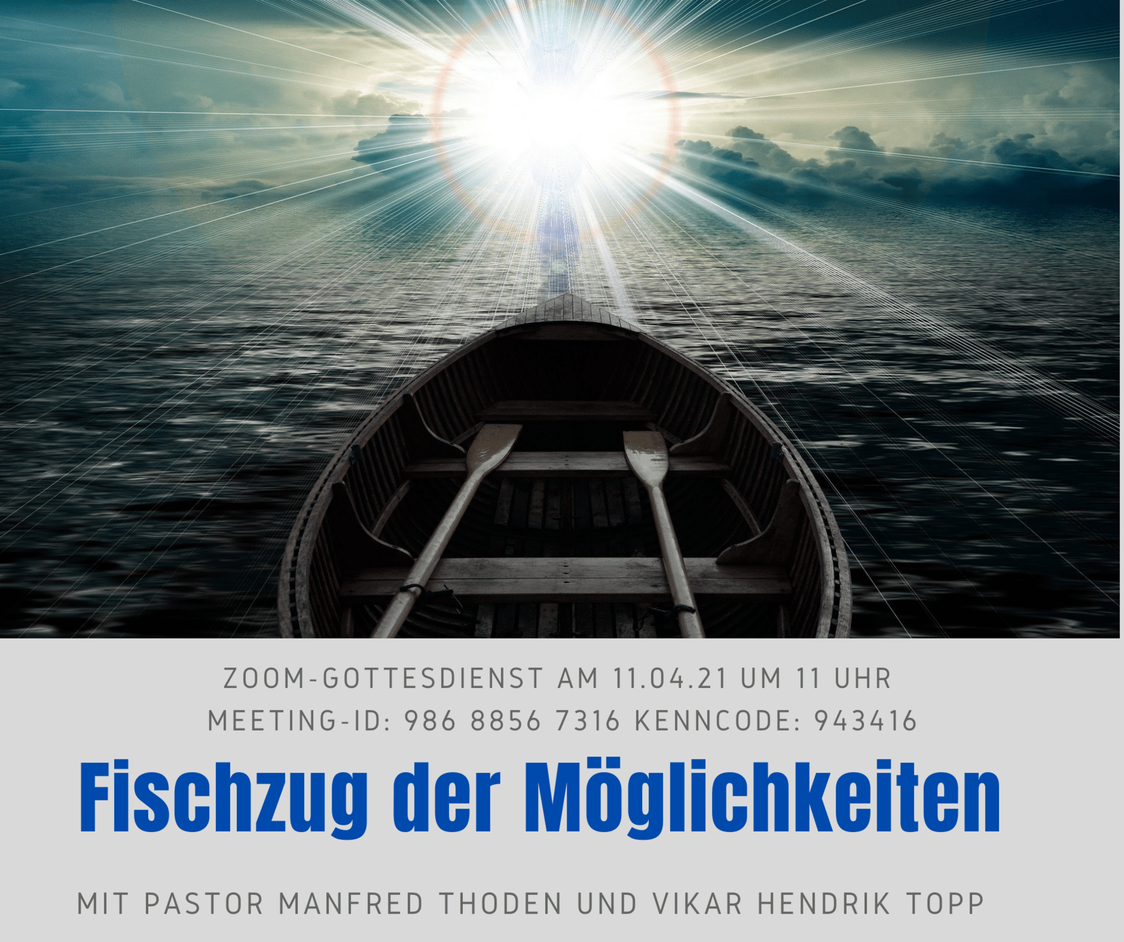 Am 11. April feiern wir unseren nächsten Gottesdienst auf Zoom mit Pastor Manfred Thoden und Vikar Hendrik Topp. Schauen Sie einmal vorbei, ab 10:30 Uhr haben wir den Zoom-Raum geöffnet.