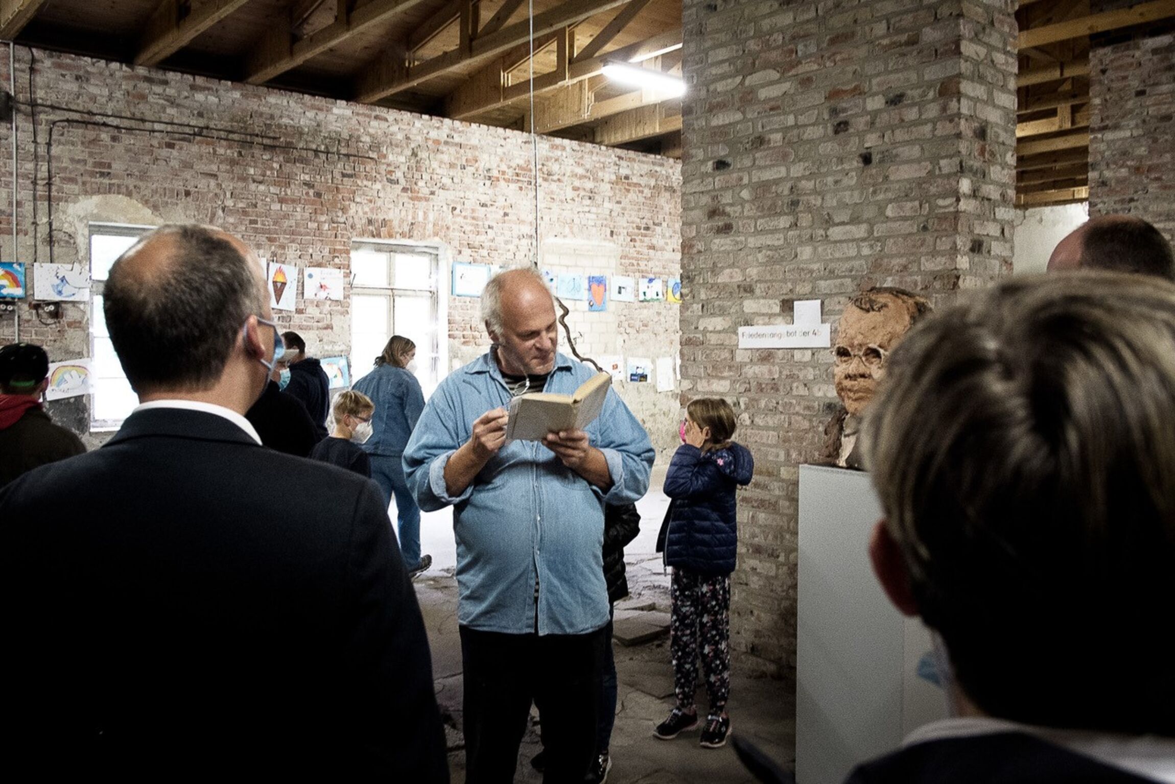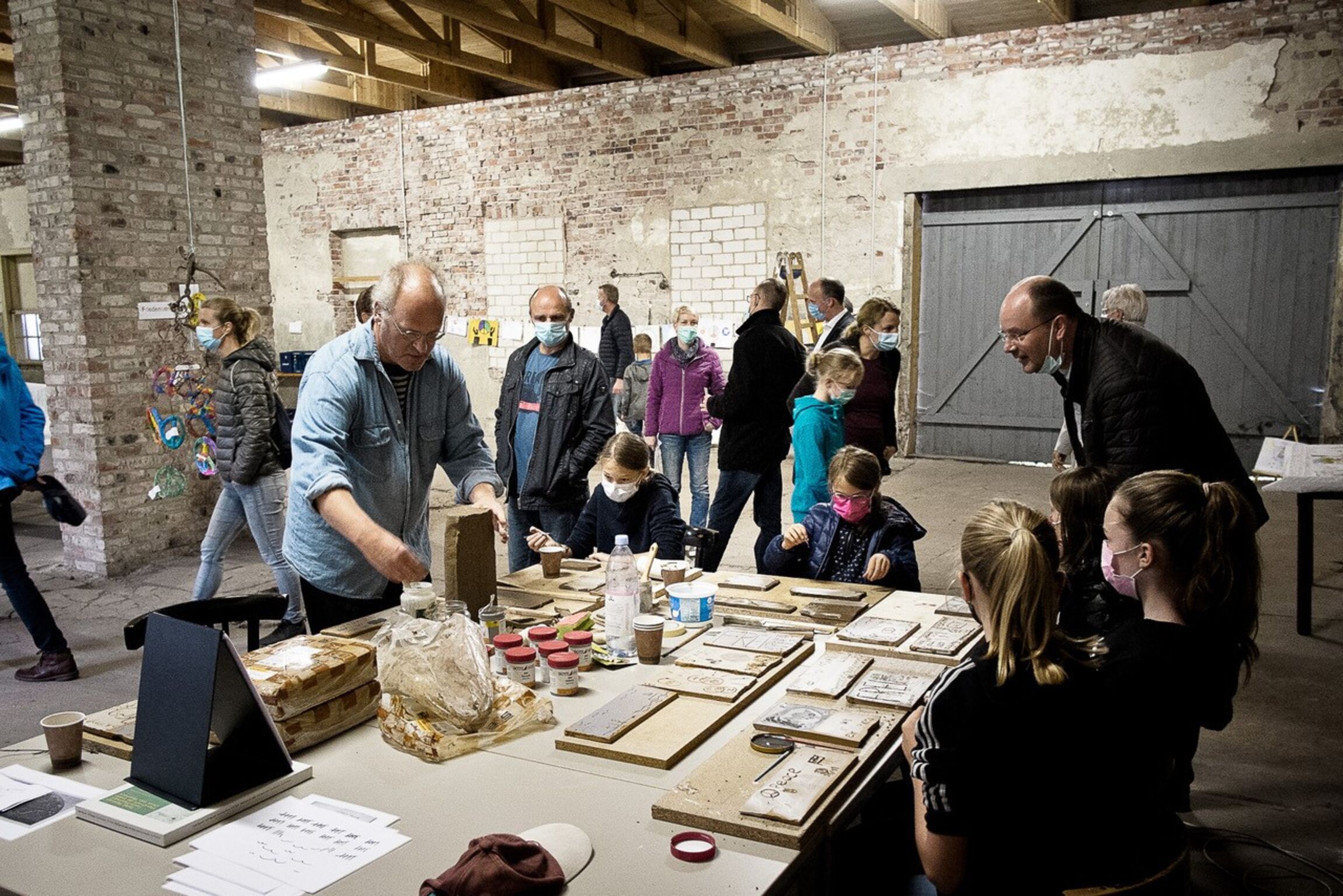Der Sonntagnachmittag bot den Gästen eine Mitmachaktion mit den beiden Künstlern Harald Birck und Daniel Pentschuk, eine kurze Geburtstagsandacht mit den beiden Pastoren und Simeon Spies am E-Piano, das Basteln von Friedenstauben, Kirchenführungen in der Lagerkirche und der Ausstellung anlässlich des Kunst-Wettbewerbs „Friedensangebot“. Diese wird noch bis zum 1. November in der Gedenkstätte Lager Sandbostel zu sehen sein. „Die Ausstellung ist voll von nachdenklichen, sehr kreativen und inspirierenden Impulsen in Sachen Frieden. Prädikat: Wertvoll“, sagt der Friedenspädagoge Freitag-Parey, der zudem sein Idealbild von Kirche verriet, als er die Besucher:innen auf die Donuts made in Ober-Ochtenhausen hinwies: „Am Eingang unserer Kirche steht ´ne Donut-Bude, der Gourmet-Himmel auf Erden, die solltet ihr unbedingt besuchen“.