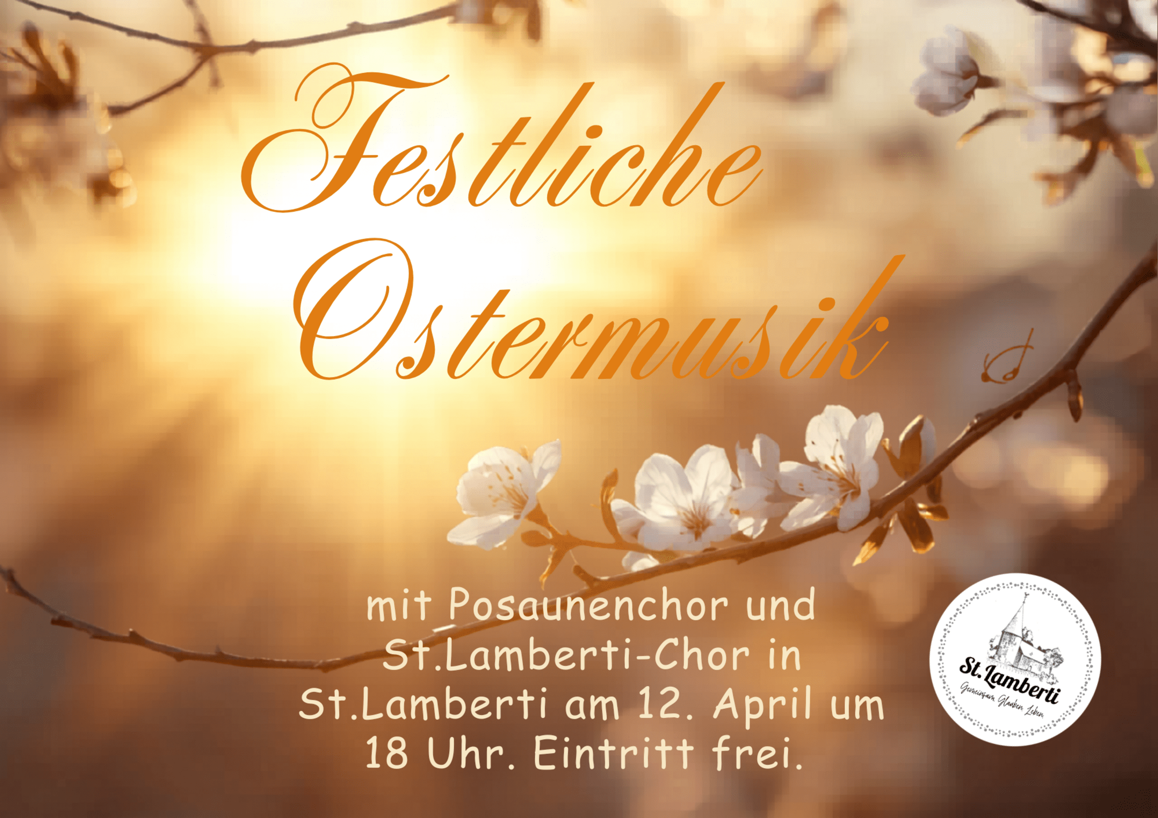 12. April, 18 Uhr, St. Lamberti, Selsingen Wir laden herzlich zur Festlichen Ostermusik am 12. April um 18 Uhr in der St. Lamberti-Kirche mit dem St. Lamberti- und dem Posaunenchor ein!