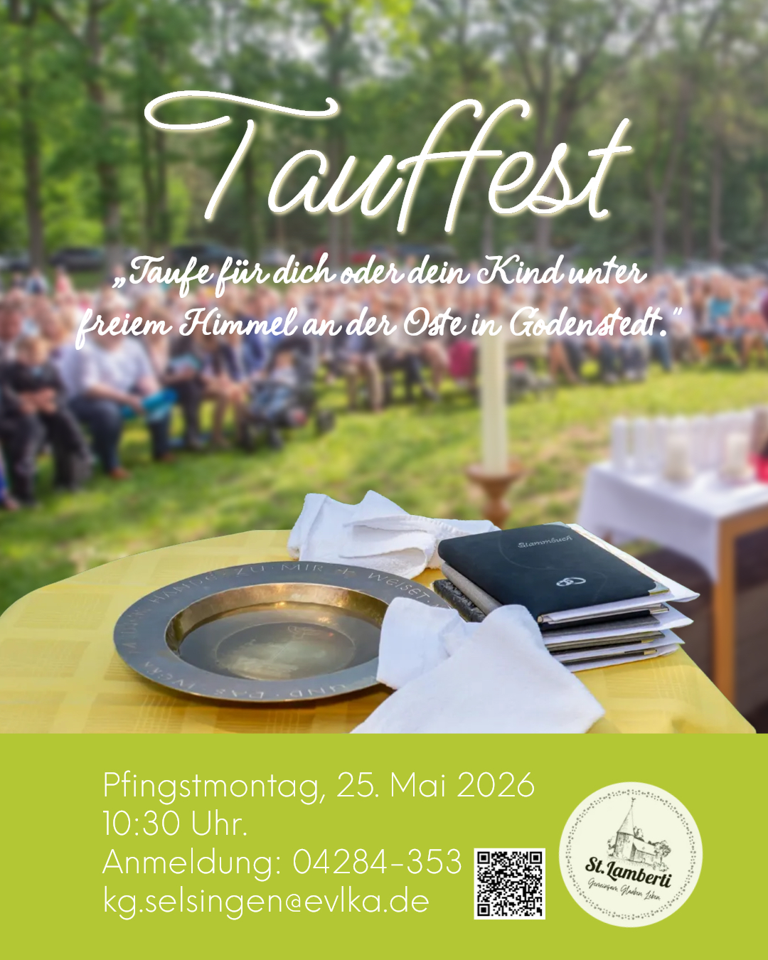 Am Pfingstmontag, den 25. Mai 2026 feiern wir um 10:30 Uhr an der Oste in Godenstedt einen Taufgottesdienst.