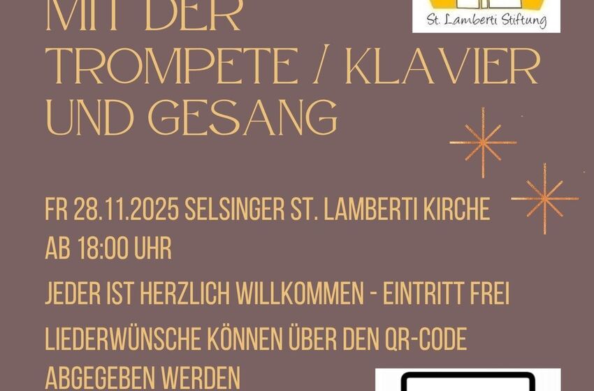 Die Stiftung lädt am Abend des Selsinger Lichterzaubers zum Mitsingen in die St. Lamberti-Kirche ein. Um 18 Uhr beginnnt der Abend. Liederwünsche können über den folgenden Link abgegeben werden:
