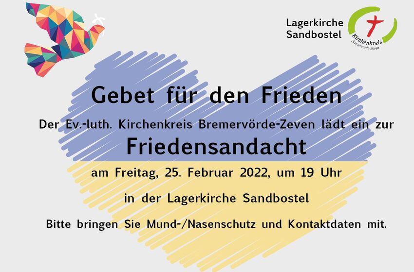 Der Kirchenkreis Bremervörde-Zeven lädt gemeinsam mit der kirchlichen Friedens- und Gedenkstättenarbeit ein zu einer Friedensandacht in die historische Lagerküche (gegenüber der Lagerkirche; ...