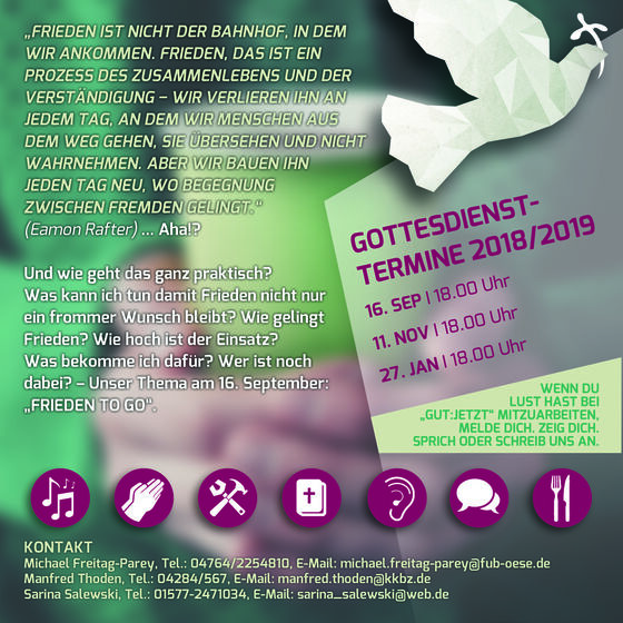 Am 16. September 2018 laden die Kirchengemeinde Selsingen und der Kirchenkreis Bremervörde-Zeven ein zum Gottesdienst „gut:jetzt“ in die Lagerkirche nach Sandbostel. „Gut:jetzt“ ist ein generationsübergreifendes Forum und eine Impuls-Werkstatt. Ein Gottesdienst zum selber denken und glauben. Und ein Format in dem gestritten werden kann und dazu eingeladen wird.