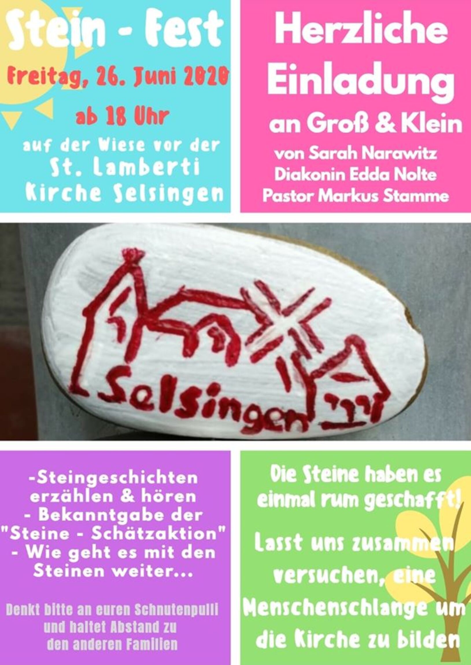 Seit vielen Wochen wächst die Selsinger Steinschlange um die Kirche herum. Stein um Stein kommt hinzu. Am Freitagabend (26. Juni) um 18 Uhr wollen wir an der Stein-Schlange ein Stein-Fest feiern.