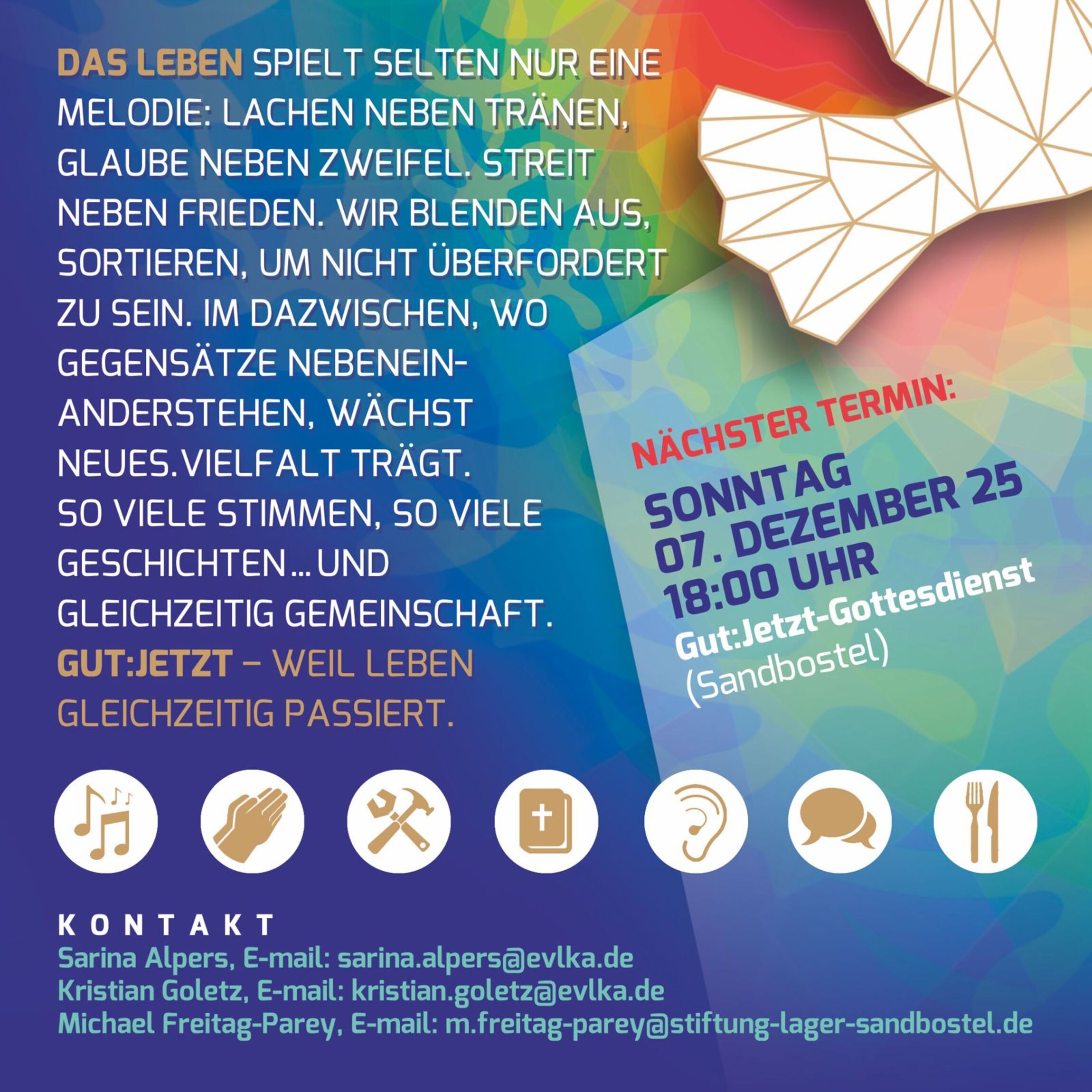 Das Leben spielt selten nur eine Melodie: Lachen neben Tränen. Glaube neben Zweifel. Streit neben Frieden. Wir blenden aus, sortieren, um nicht überfordert zu sein. Im Dazwischen, wo Gegensätze nebeneinanderstehen, wächst Neues. Vielfalt trägt.